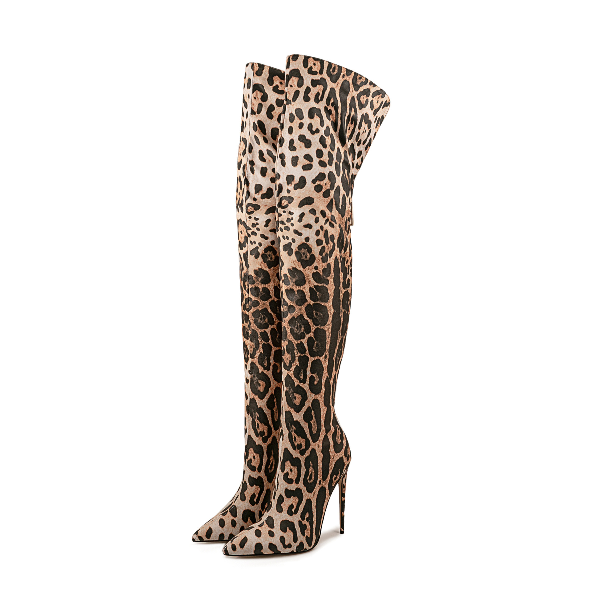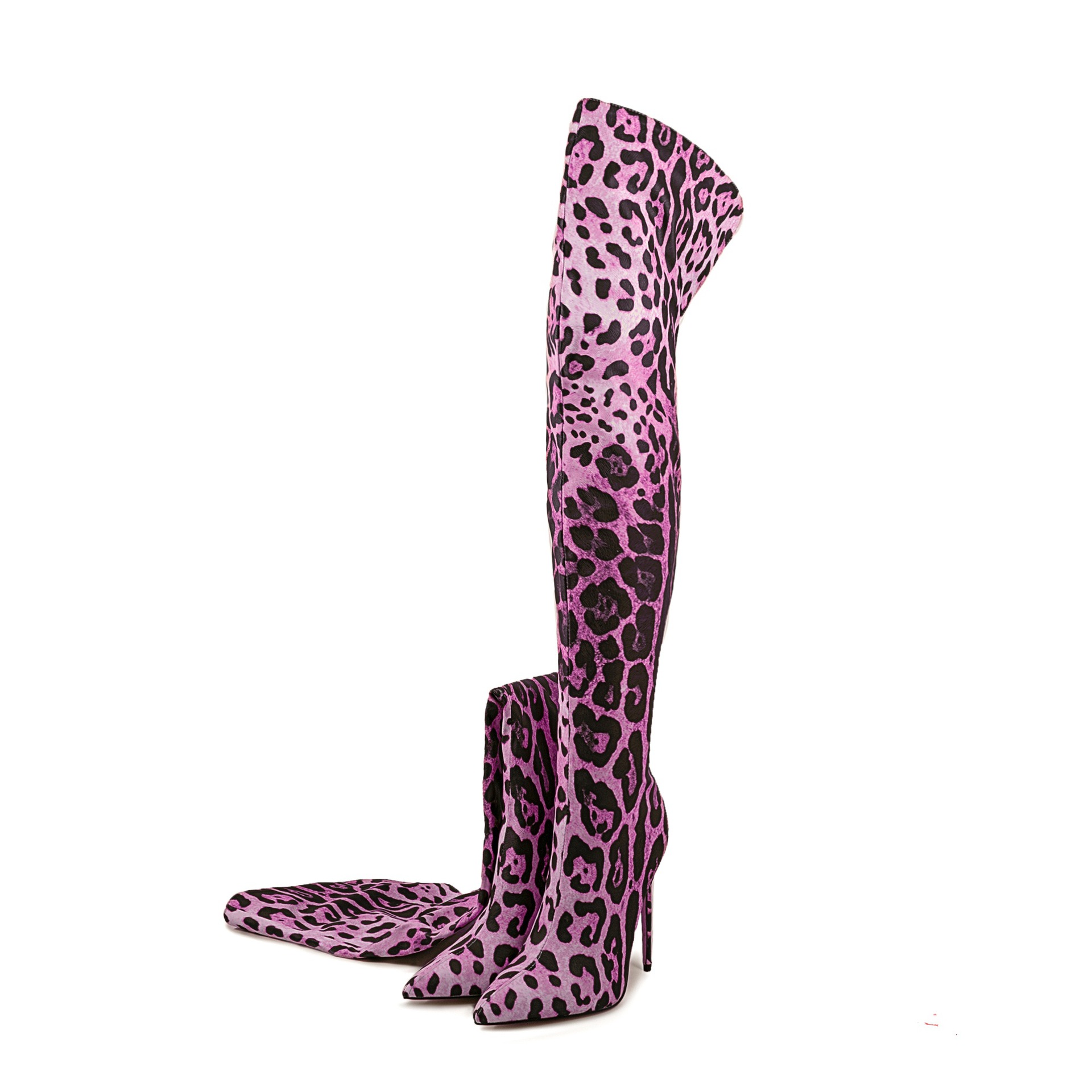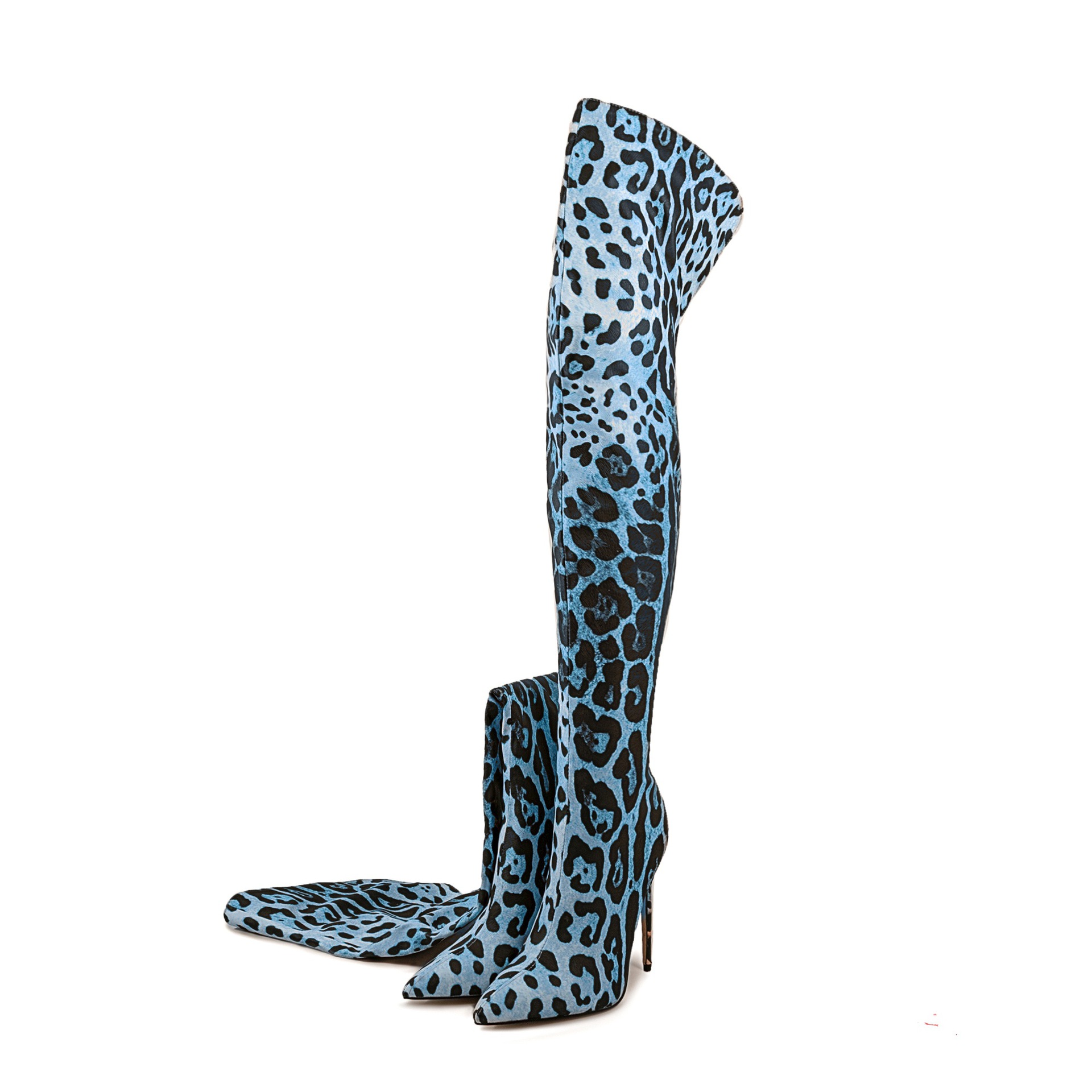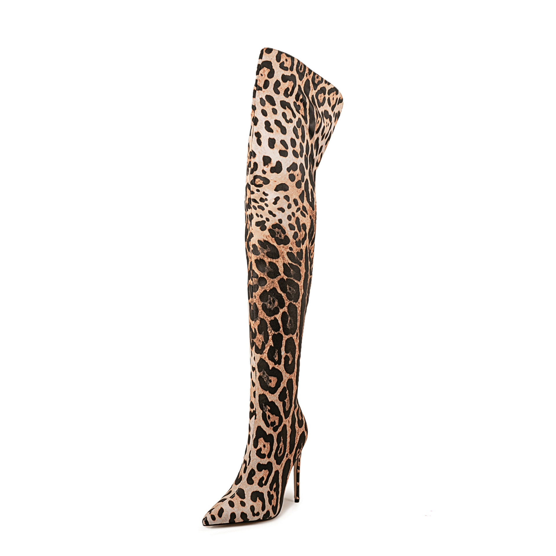 Pointed-toe Stiletto Leopard Print Stretch Thin Boots Nightclub Bar Pole Dance