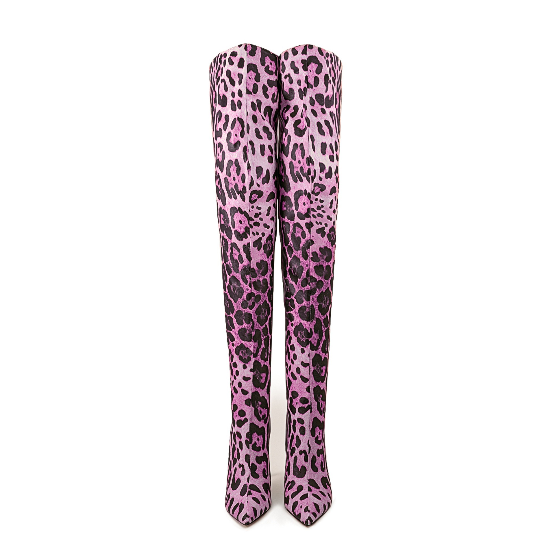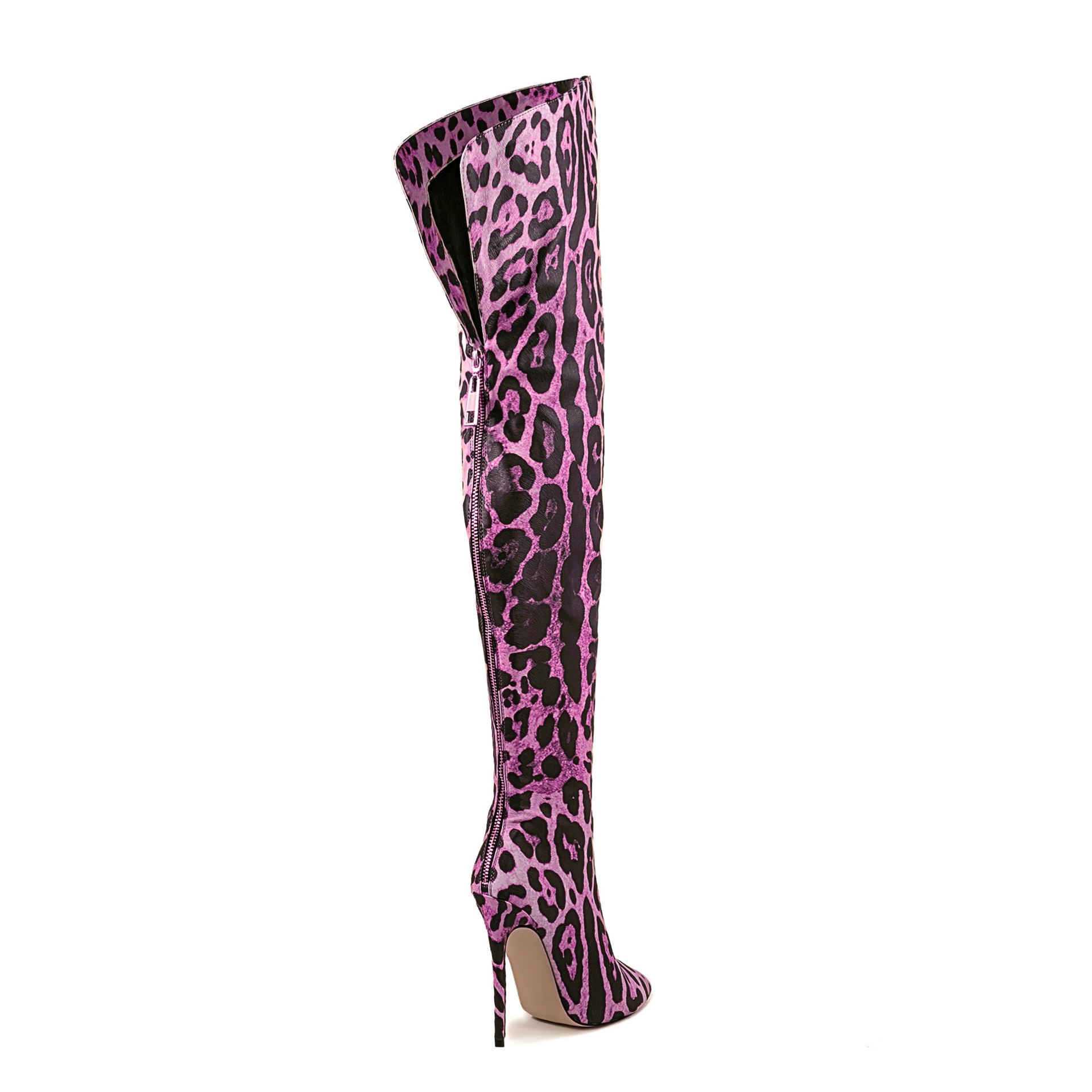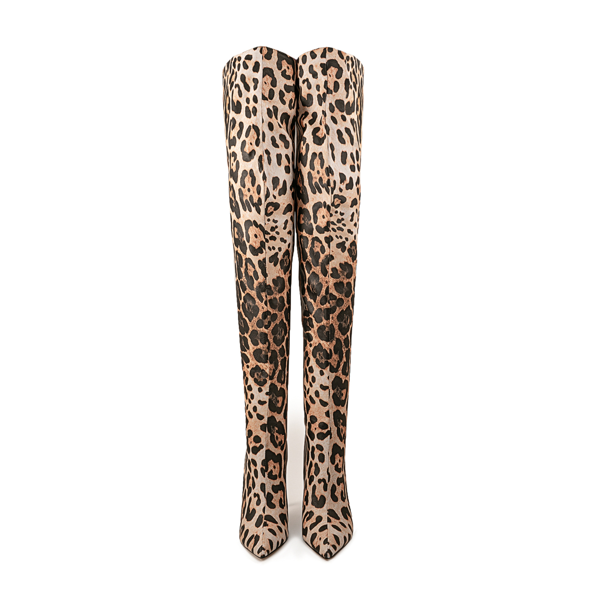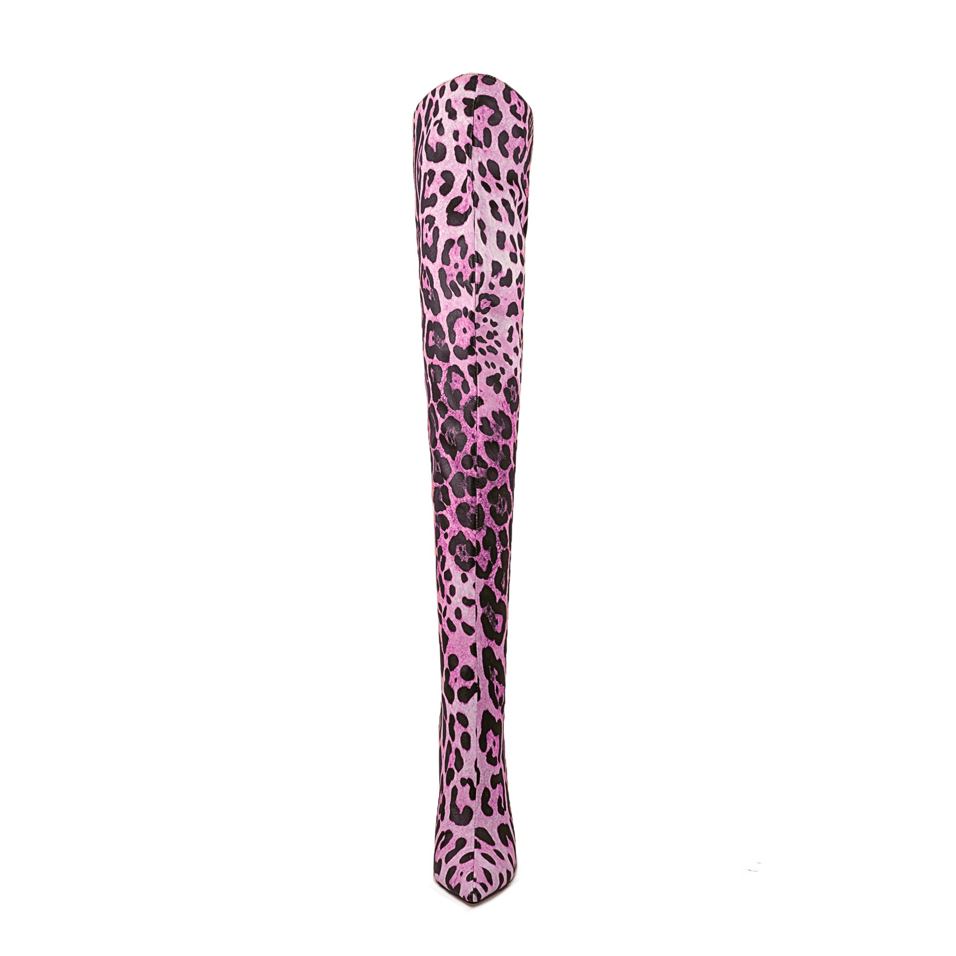 Pointed-toe Stiletto Leopard Print Stretch Thin Boots Nightclub Bar Pole Dance